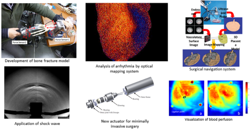 Our laboratory focuses on the biomedical applications, especiallybiomedical devices and system based on mechatronics (a multidisciplinary field of electrical engineering and mechanical engineering). We are developing novel technologies such as a computer assisted surgical system for precision treatment, diagnostic method to visualize lesion, and navigation system for conducting advanced surgery. We are also doing vasic research for investigating the response of biological cells,tissues and body by using precision measurements and manipulation techniques.